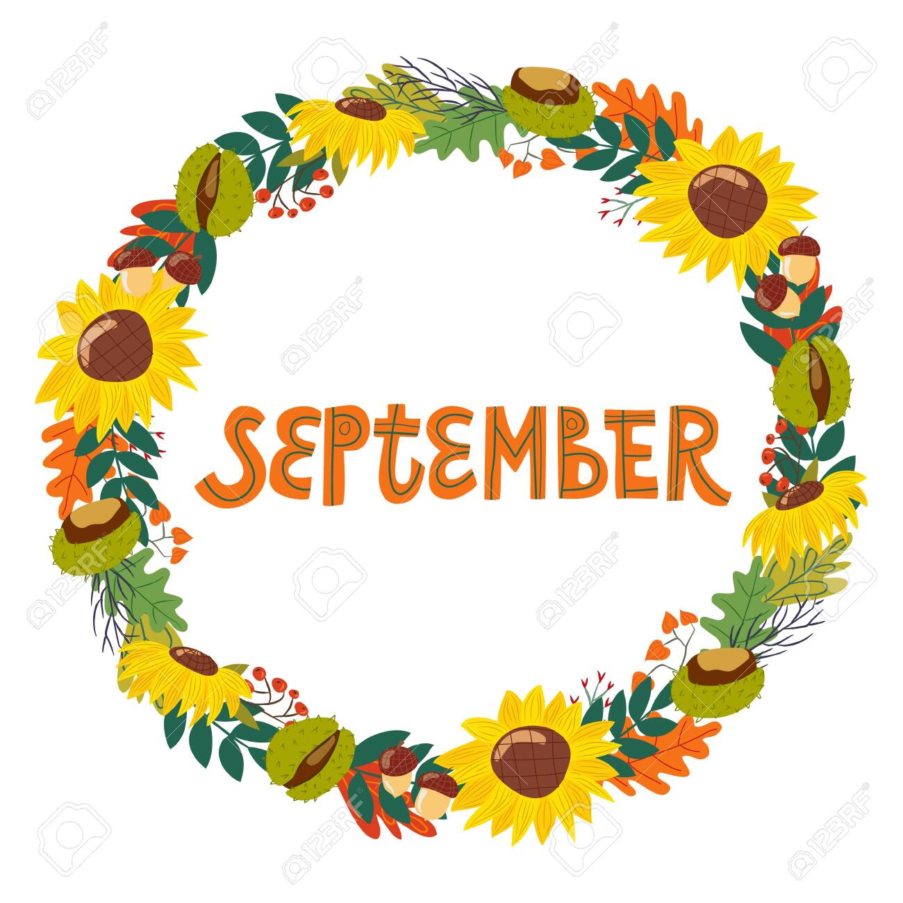 Hand Drawing Lettering Month Of September In A Wreath Of Flowers And Fruits Royalty Free Svg Cliparts Vectors And Stock Illustration Image 137843287